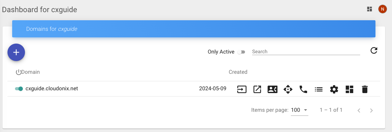 menu option, to access the domains management view. The screen will change, displaying a list of