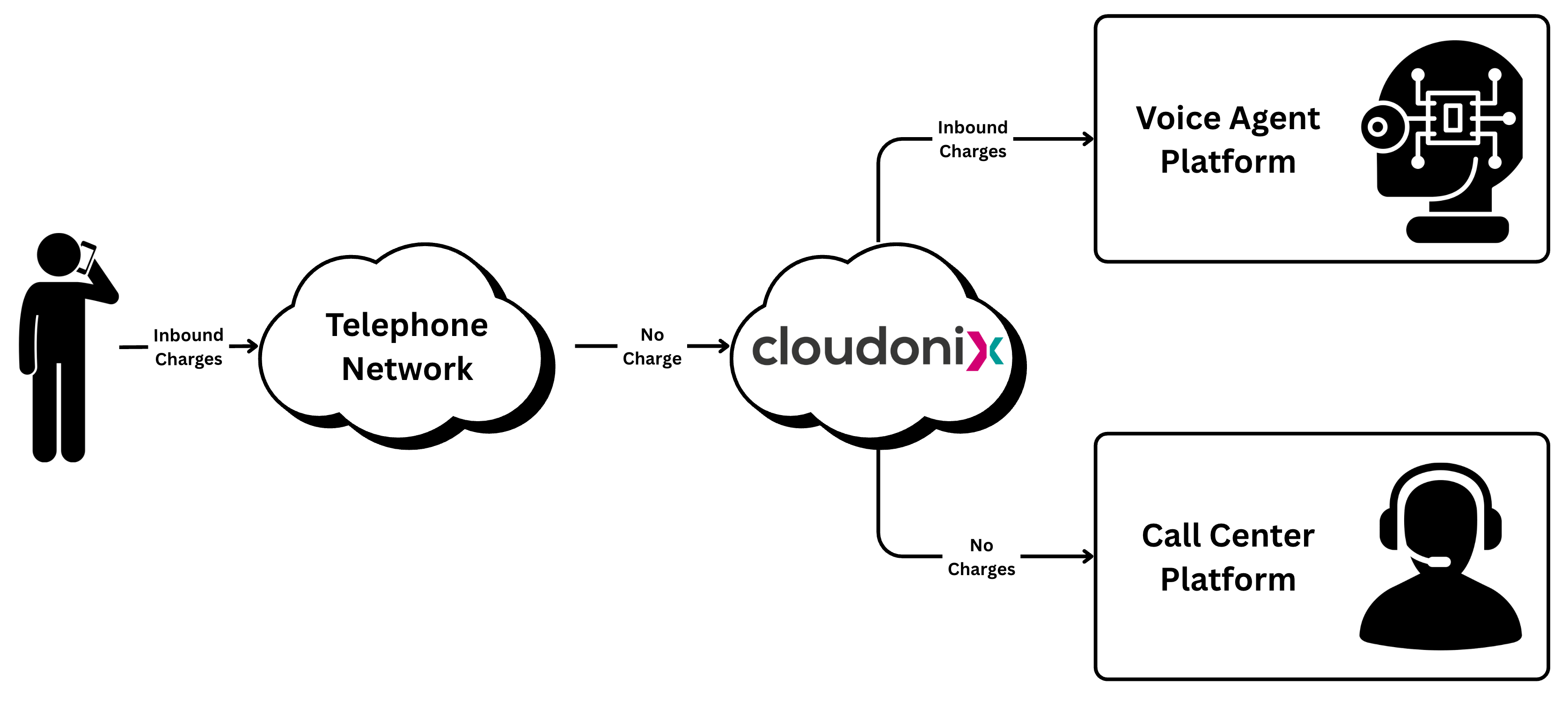 Connecting your voice agents via Cloudonix introduces multiple advantages, over the normal use-case of purchasing phone numbers from your voice agent provider. The following includes some basic use-cases, which are not available using voice agent platforms.