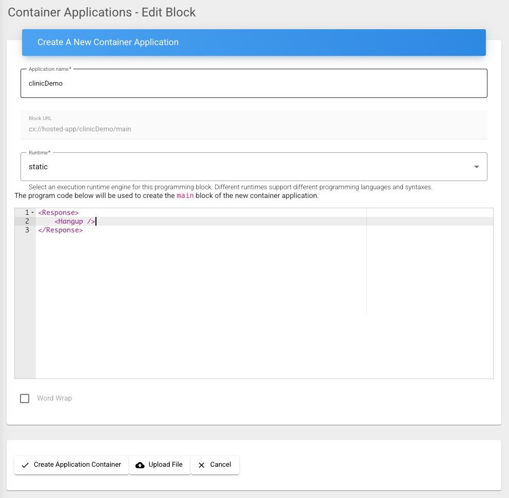 static | A static block consists of a static CXML file, performing a pre-determined CXML call-flow script. | cxml_[purpose] | cxml_call_pharmacy |