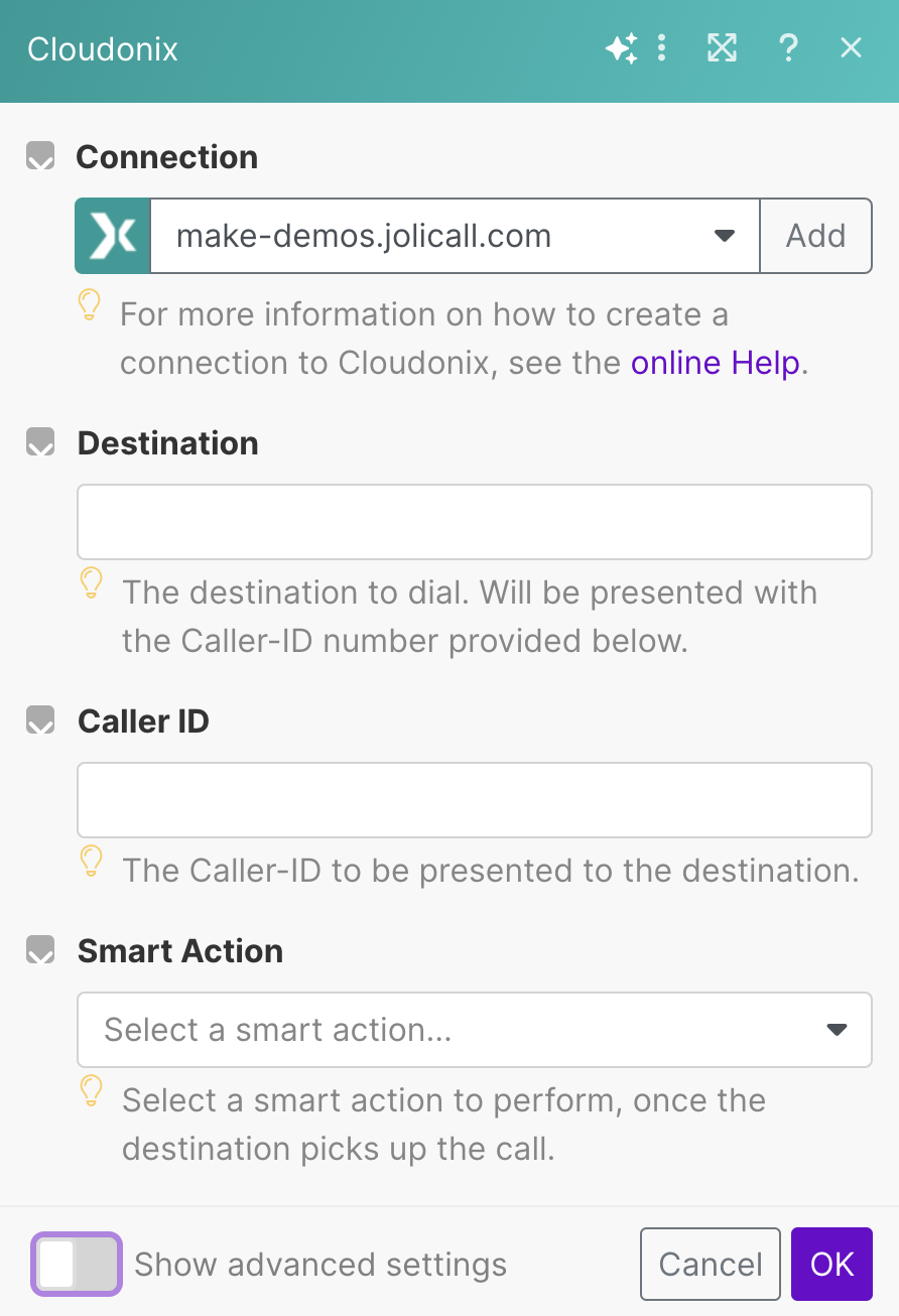 This module provides the developer a simple way to initiate an outbound call to a specific destination, then, connect it to a voice application - once the remote party had answered the call.