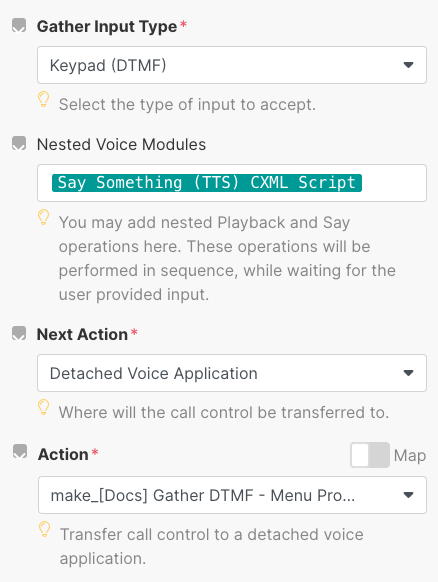 <Gather action="a remote make endpoint URL for the 'Menu Processor'">