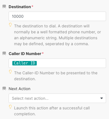 Where each of the branches affectively executes a Make a Call module, to call a specific destination.