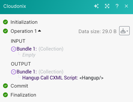Upon completing the scenario execution, the final rendered CXML document looks like this: