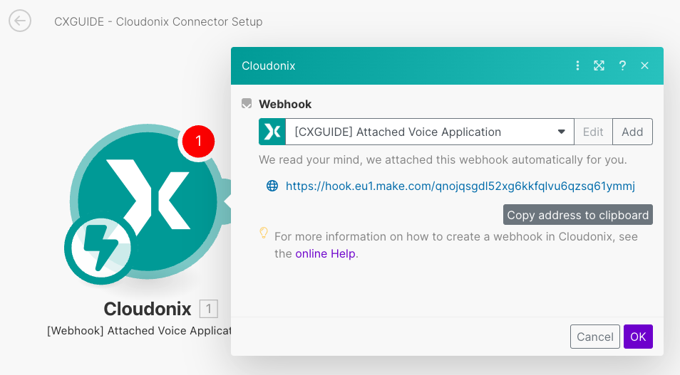 The Cloudonix Make.com application (Click to Install) provides a simple integration between Cloudonix and the Make.com platform. The application enables the user the following capabilities: