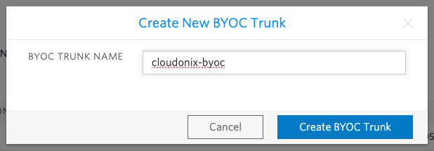 Give your new trunk a meaningful name and click Create BYOC Trunk.