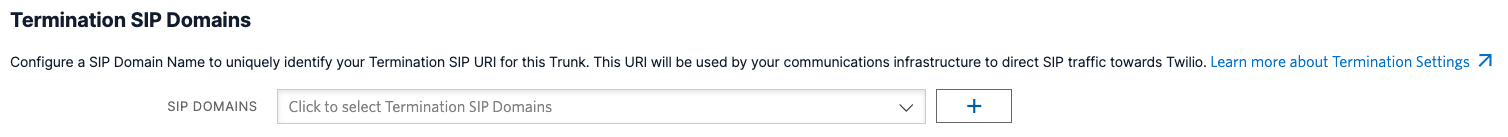 Now, scroll down to the Termination SIP Domains and click the plus button to create a new SIP Termination endpoint.