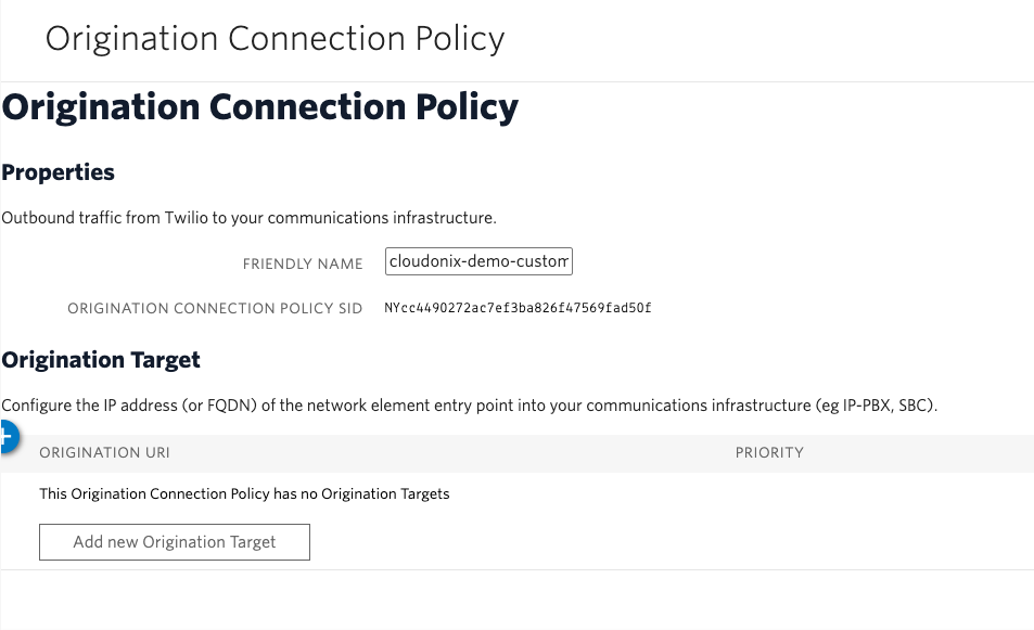 Friendly Name | Use your Cloudonix domain name for easy usage later on. | Eg. cloudonix-demo-customer.cloudonix.net |