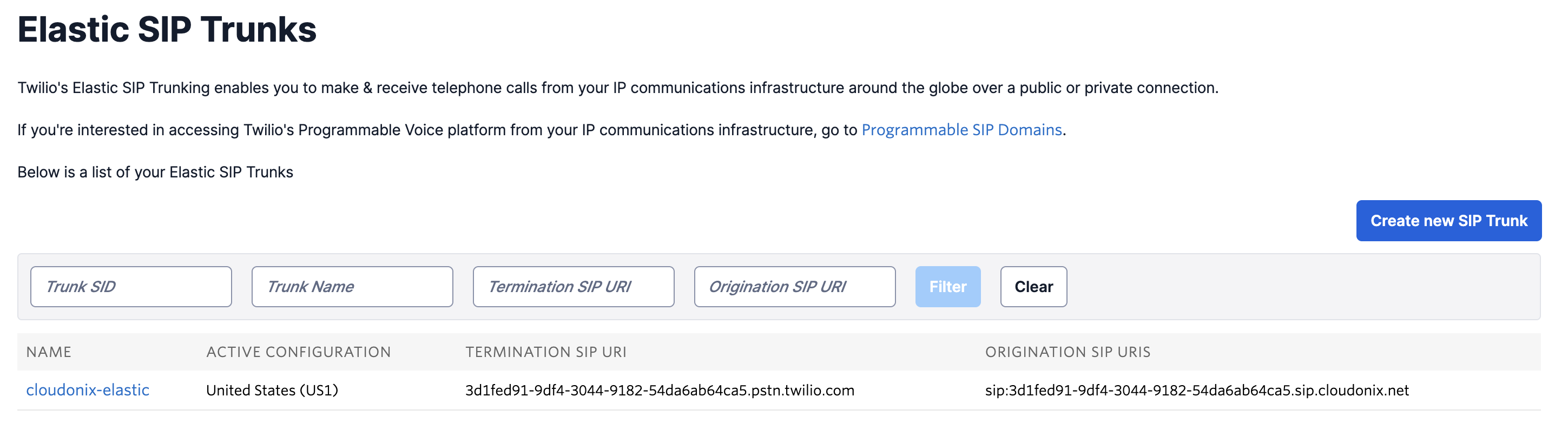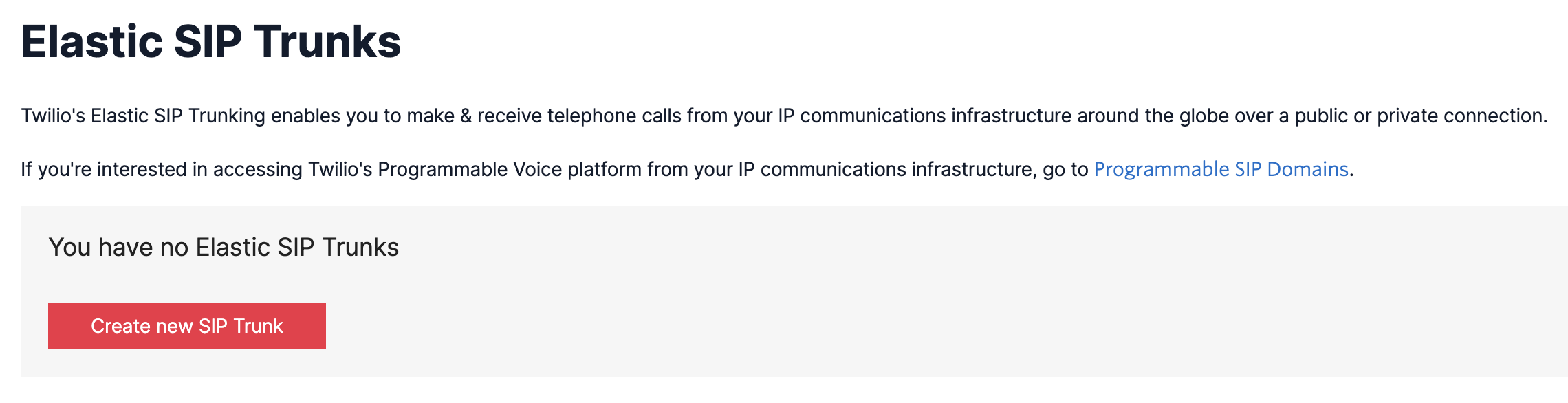 Twilio offers two variants of SIP trunking capabilities: BYOC Trunks and Elastic SIP Trunking. We will explain both SIP trunking procedures, however pay attention below for the intended use of each SIP trunking option.